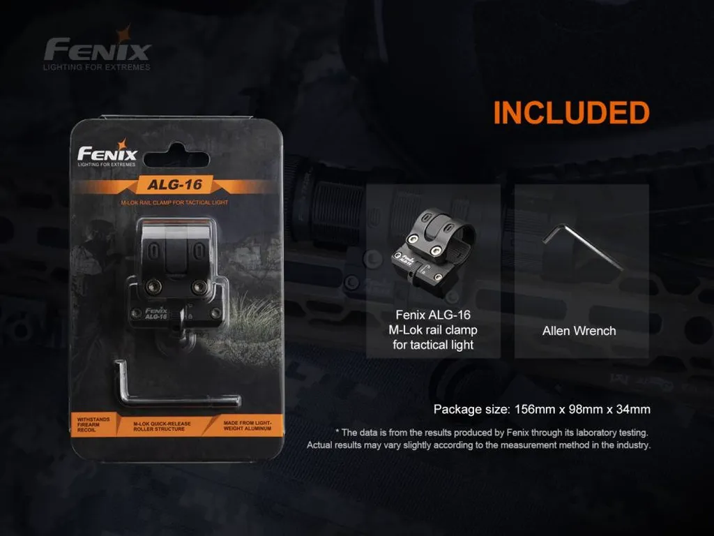 Discover the Fenix ALG-16 M-Lok rail mount, the ideal solution for securely attaching your tactical flashlight. Perfect for enthusiasts in Canada and beyond, this mount is compatible with flashlights featuring barrel diameters of 22.5mm to 26mm and head diameters under 40mm. Made from durable aluminum alloy with a hard-anodized finish, it offers a robust performance under demanding conditions. The innovative roller structure mechanism allows for hassle-free, tool-less installation and removal, making it a top choice for both rechargeable and high-lumen flashlights. Enhance your tactical gear with Fenix's precision-engineered flashlight mount and experience unmatched reliability today.