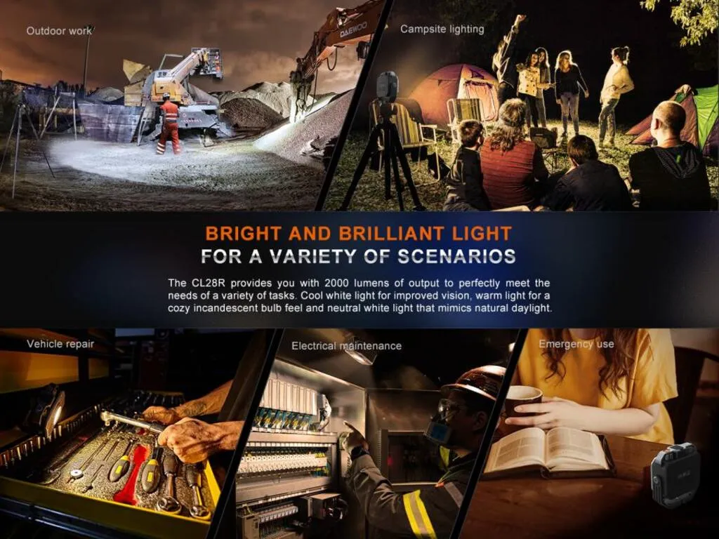 Discover the Fenix CL28R, a powerful rechargeable lantern perfect for outdoor adventures and work environments in Canada. Offering an impressive 2000 lumens output, this Fenix flashlight lights up a 160° area with a beam reaching up to 58 meters. Featuring a unique color adjustment dial, it allows seamless transition between cool and warm white light for enhanced color rendering, ideal for photography and detailed tasks. The lantern also includes a red LED for night vision preservation. Built to IP66 waterproof standards, it boasts a 1.5-meter impact resistance. With USB-C charging and power bank functionality, stay powered anywhere. Order the Fenix CL28R flashlight in Canada today!